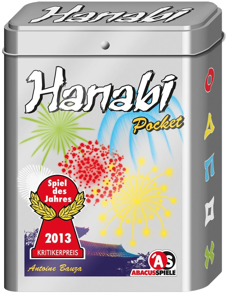 Hanabi—named for the Japanese word for “fireworks” and consisting of the ideograms “Flower” and “Fire”—is a cooperative game in which players try to create the perfect fireworks show by placing the cards on the table in the right order.