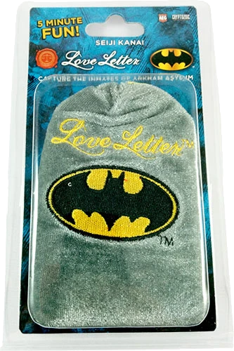 Love Letter: Batman is a game of risk, deduction, and luck for 2–4 players based on the original Love Letter game by Seiji Kanai. The deck consists mostly of criminals, with Joker being the most valuable card at #8, Harley Quinn at #7, and so on, with Robin showing up at #4 and Batman as #1, which is the guard in the original Love Letter. Your goal is either to hold — that is, have captured — the highest valued card at the end of the round or to be the final player active in the round.