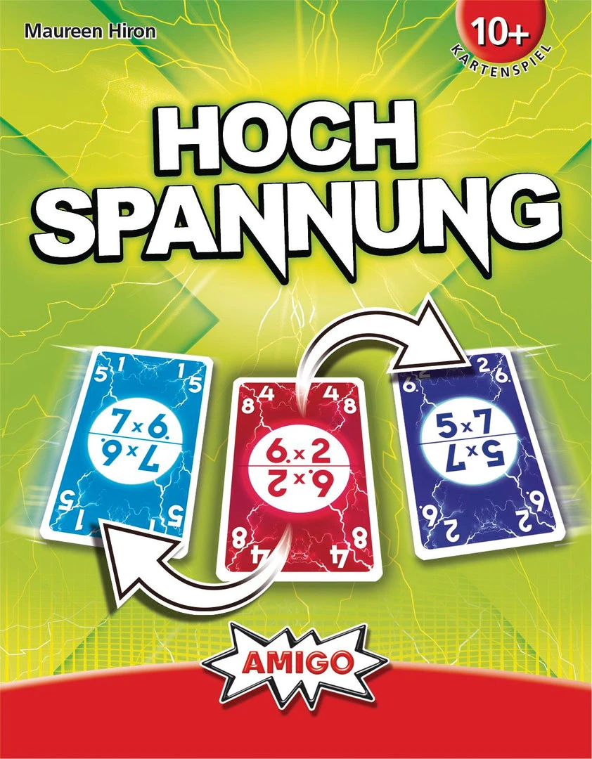 Try to rid yourself of cards quickly in Hochspannung! Distribute the deck evenly among all the players, then lay out one card face up to start the discard pile. Each player takes four cards from the personal deck in hand, and they can draw more cards from it at any time — which may or may not be helpful.