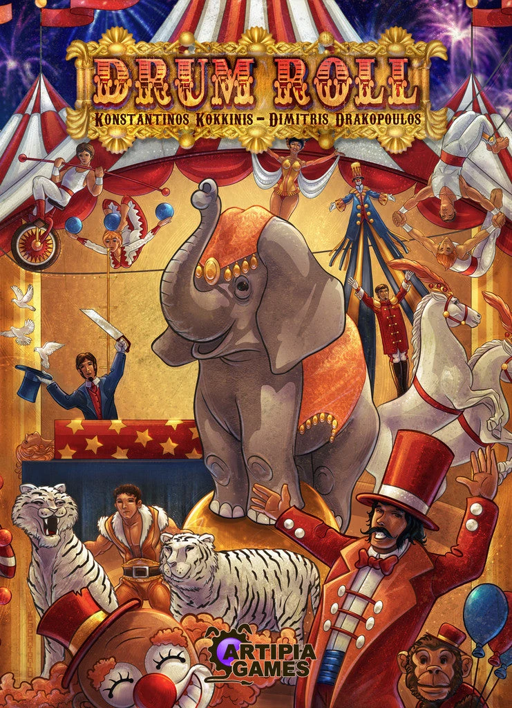 In Drum Roll each player takes over the role of a circus owner in the early 1900s. Each player moves around Europe hiring performers and giving shows.