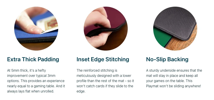 For the nights when you just want to play a short game or go to a friend’s home where they don’t have a game table (sad but true reality), the convenience of having a gaming playmat that can easily roll out and pack back into its carrying case without hassle just might be life-changing. We know it has been for us.