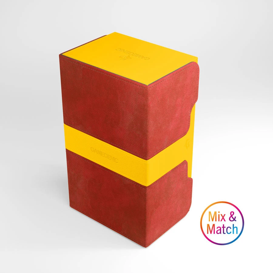 Two removable card holders keep up to 200 double-sleeved cards in this large and extremely robust deck box. The Stronghold is covered with elegant Nexofyber material, with soft microfiber inside, and also contains an accessories drawer. Just like other Convertible products, its flaps are removable and can be clipped to the back side of the box. Powerful magnets ensure a safe closure. Completely removable, interchangeable flaps and inner card holders offer Mix & Match customization options.