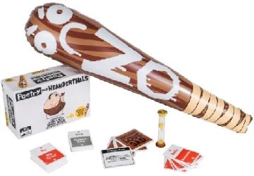 Poetry for Neanderthals is a family-friendly party game similar to Taboo where players earn points by getting their teammates to guess words and phrases. The catch is that the “Neanderthal Poets” are only allowed to use single syllable words. If they use any words with more than one syllable, the other team gets to bop them with a 2-foot inflatable club. The team with the most points wins!