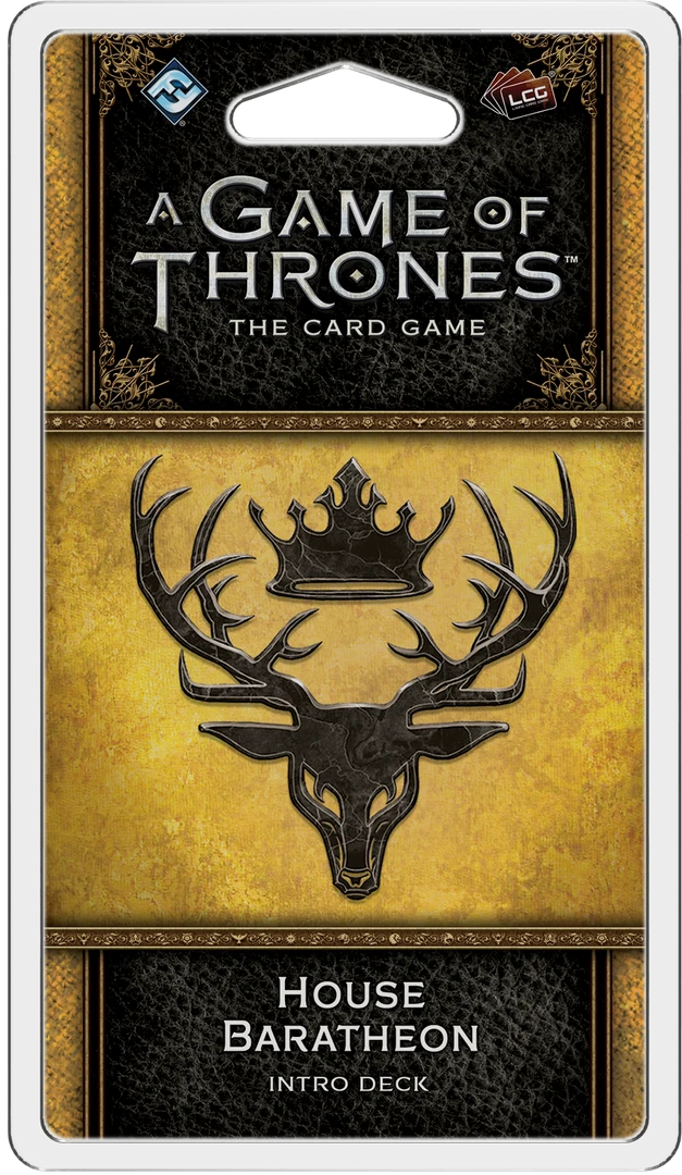 Join the battle for the Iron Throne with the House Baratheon Intro Deck for A Game of Thrones: The Card Game! This pre-constructed deck introduces you to the mechanisms and key characters of House Baratheon to provide a stable foundation and highlight the faction’s unique features. By holding on to power and forcing your enemies to kneel before you, all of Westeros will respect that yours is the fury.
