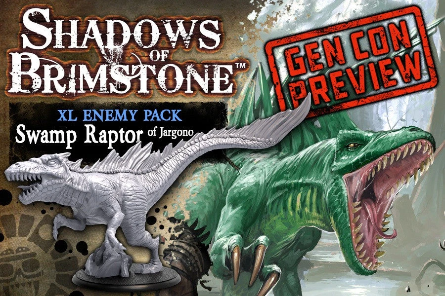 Stalking the swampy jungles of Jargono, the deadly Swamp Raptor is one of the creatures most feared by tribal natives and Serpentmen alike! With its thick-scaled hide, lightning fast speed, and viciously sharp teeth, the Swamp Raptor is the ultimate predator of the jungle! This Enemy Pack contains everything you need to add the savage Swamp Raptor of Jargono to your games of Shadows of Brimstone! A high detail plastic model of the Swamp Raptor is included, as well as the rules and cards needed to add it to your games.