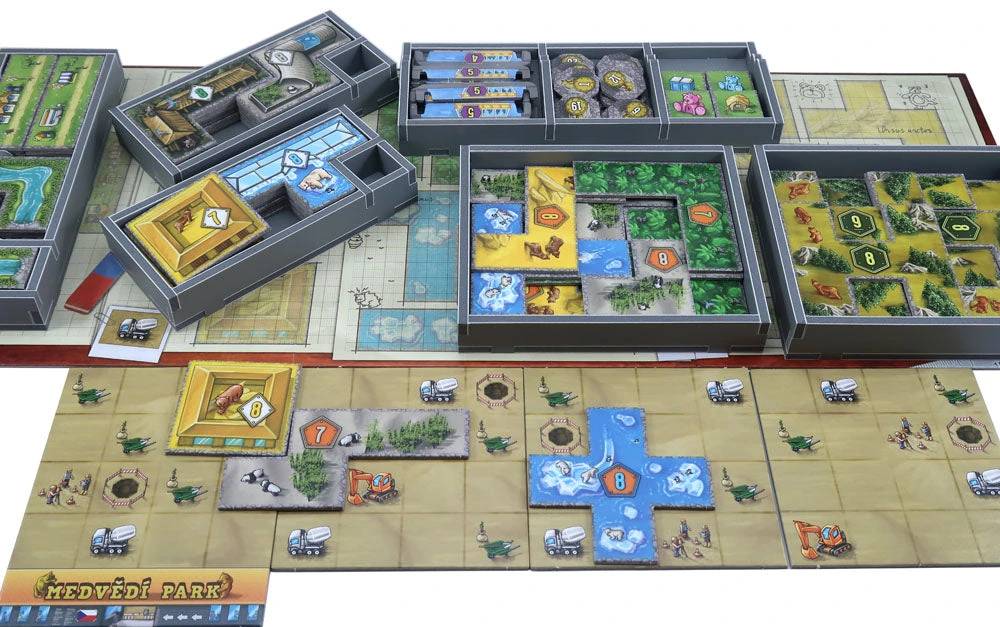 Insert compatible with Barenpark, and The Bad News Bears® expansion. The design provides both efficient storage and improved game play. Many of the trays can be utilised during the game, and they greatly aid set-up and clear-away times. The trays are arranged in three layers.
