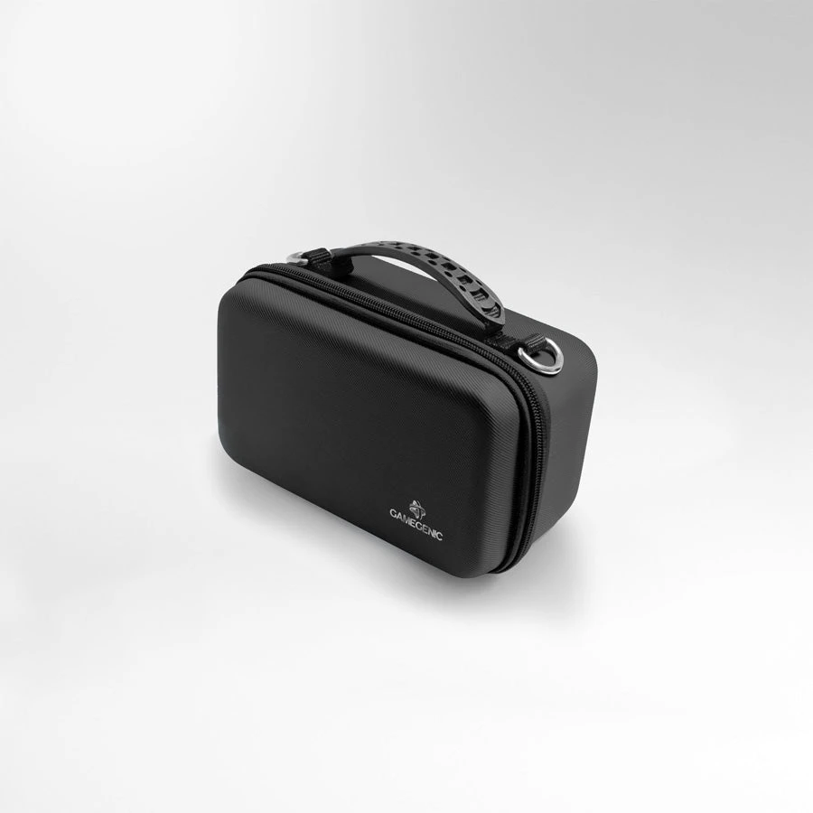 The Game Shell is a portable case, perfectly sized for a wide variety of usages. It fits up to 250 double-sleeved cards, tokens, dice or even complete small games. The outside material comes in durable and resistant nylon with a premium structure. It boasts a reinforced handle and two zippers, hidden and protected by the outer material. On the inside, the Game Shell provides an accessories compartment and two adjustable dividers. This enables a completely free setup, adjustable to your needs and preferences.