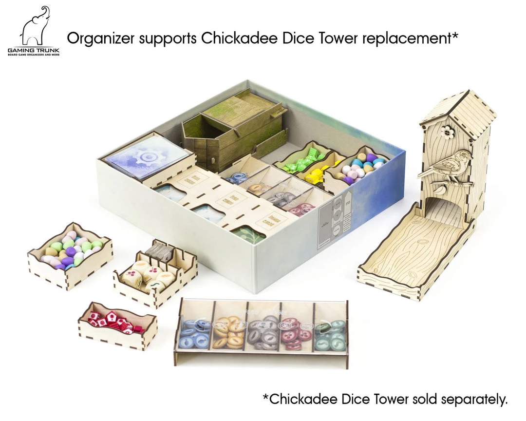 Wings organizer is compatible with Wingspan from Stonemaier Games.