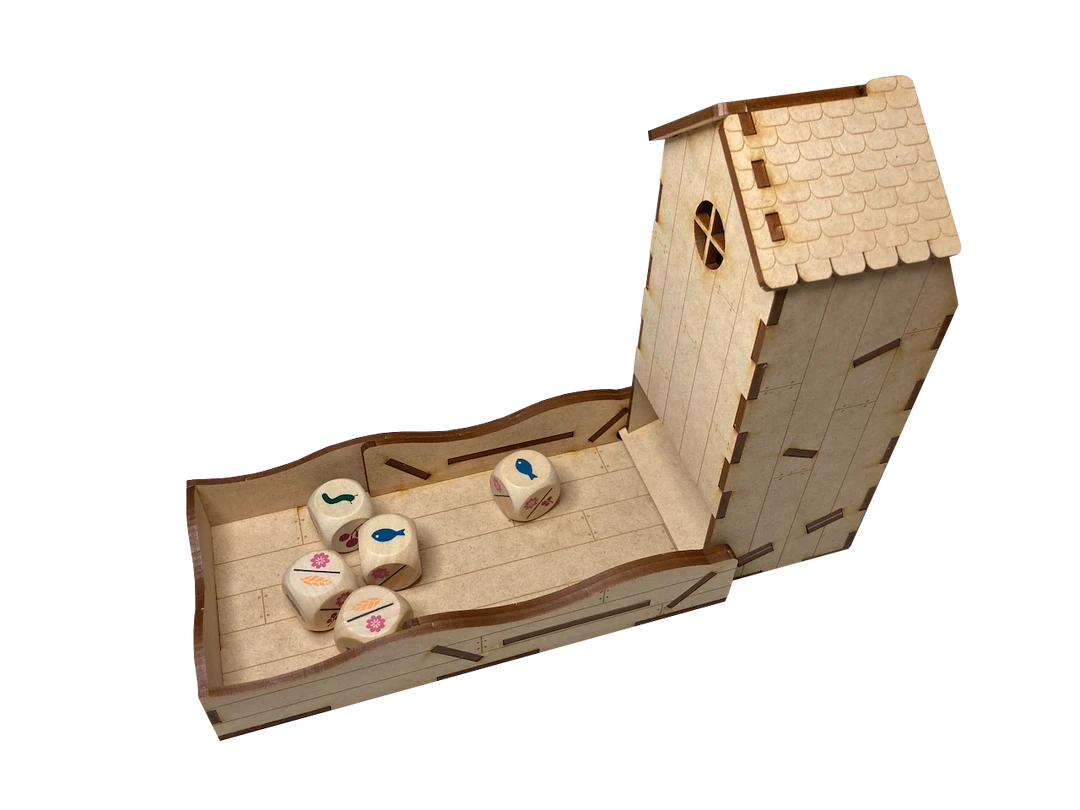 This dice tower includes engravings, which really elevates this dice tower, especially if you stain or paint it!