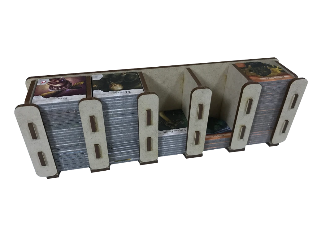 - If you own the base game, at least one expansion, but not all of the expansions, you need the EH-001 (this insert) and may need 1x EH-002 as well depending on sleeve thickness and number of dividers used.