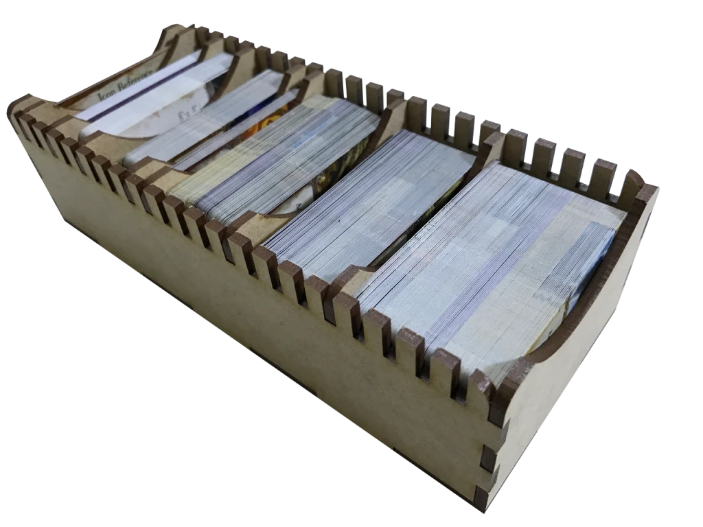 You will note all images illustrate the game stored without using sleeves. Sleeves can decrease your storage capacity by up to 50% in some cases, based on sleeve thickness. See product notes below for more information.