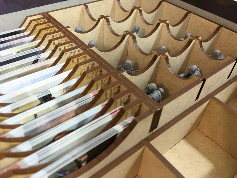 With the release of Return to Hoth, Imperial Assault now has a large collection of map tiles. Â This insert will store your map tiles in a more organized fashion. Â The three compartments and one tray within this insert will allow you to separate your large map tiles from your smaller map tiles. Â It will also allow you to separate your Hoth map tiles from your other map tiles, if you wish. Â There is some room left for additional tiles (lots of room for smaller tiles).
