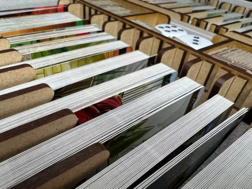 - two (2) removable card trays and 20 wood dividers