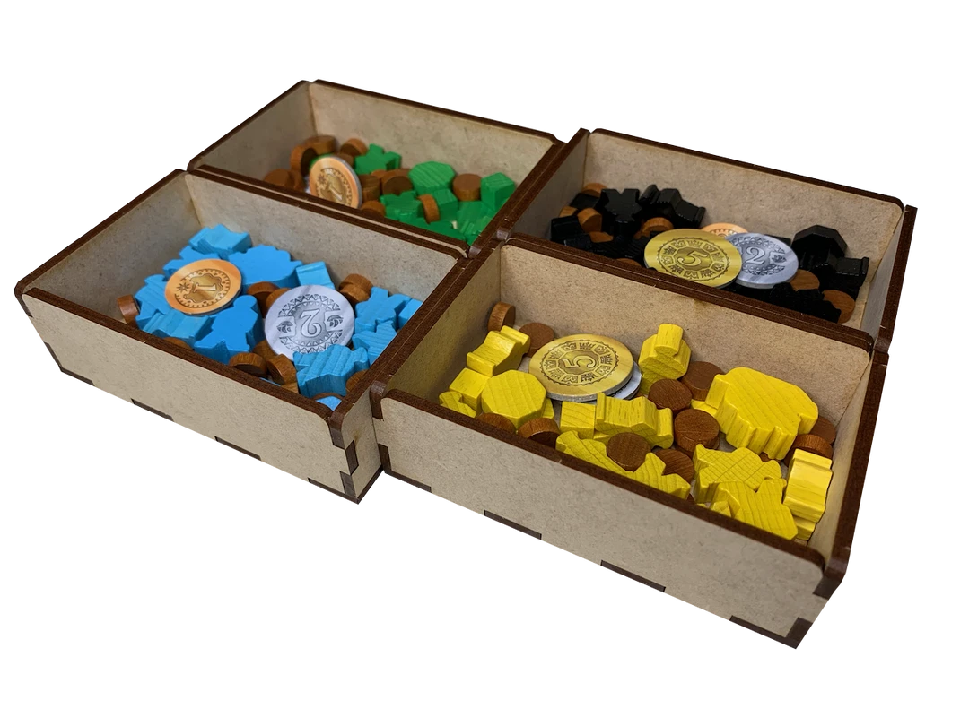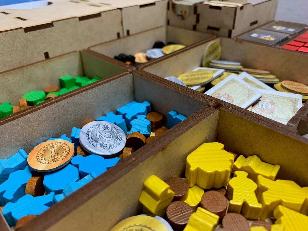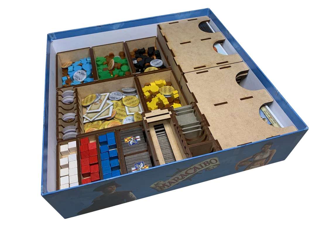 The Go7 Gaming organizer for Maracaibo provides a total storage solution for your Maracaibo base game. Our solution includes three (3) trays for use on the board itself and nine (9) additional trays for use during storage and play. This solution includes twelve (12) removable trays.