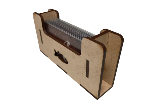 - two (2) card trays for storing small cards that act as deck dispensers during play. The deck dispensers offer card storage on top of and inside the dispenser to speed setup and storage of your game.