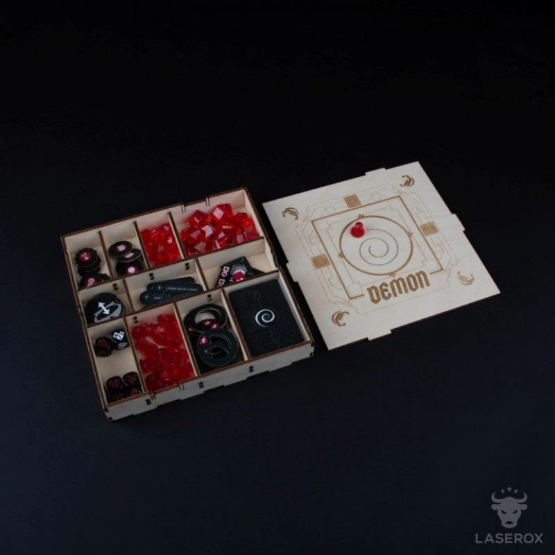 These two storage boxes were designed to hold all small tokens from Claustrophobia 1643 of the Human and Demon faction in one place.