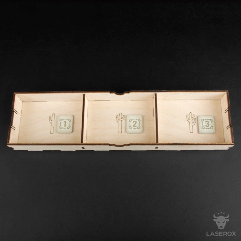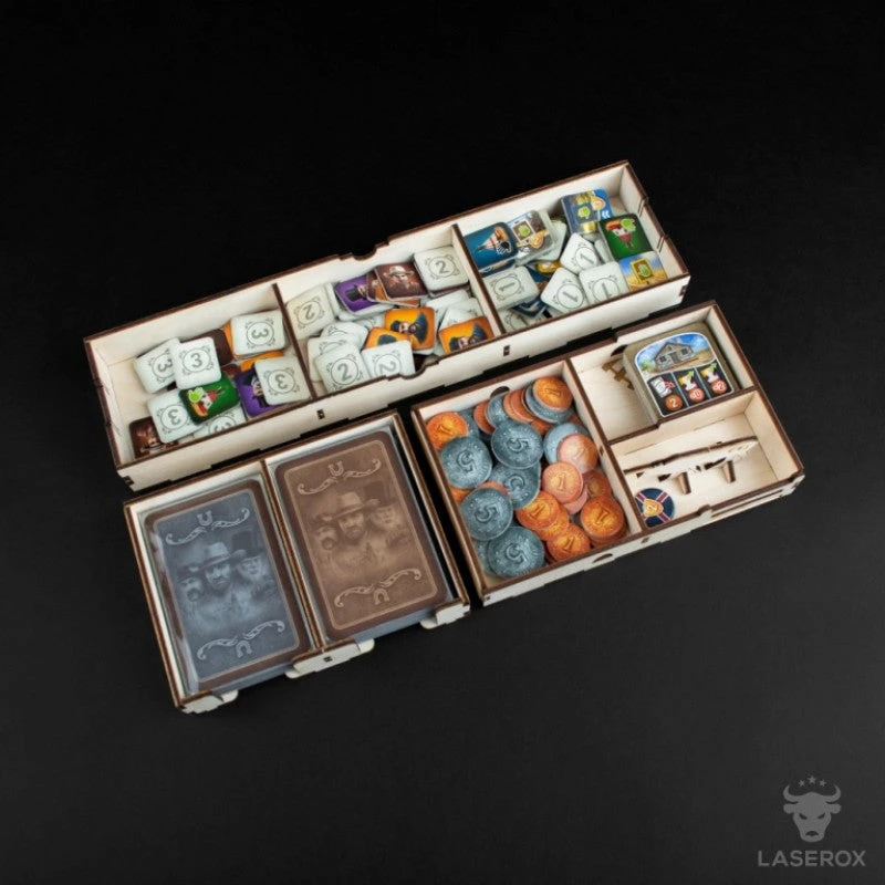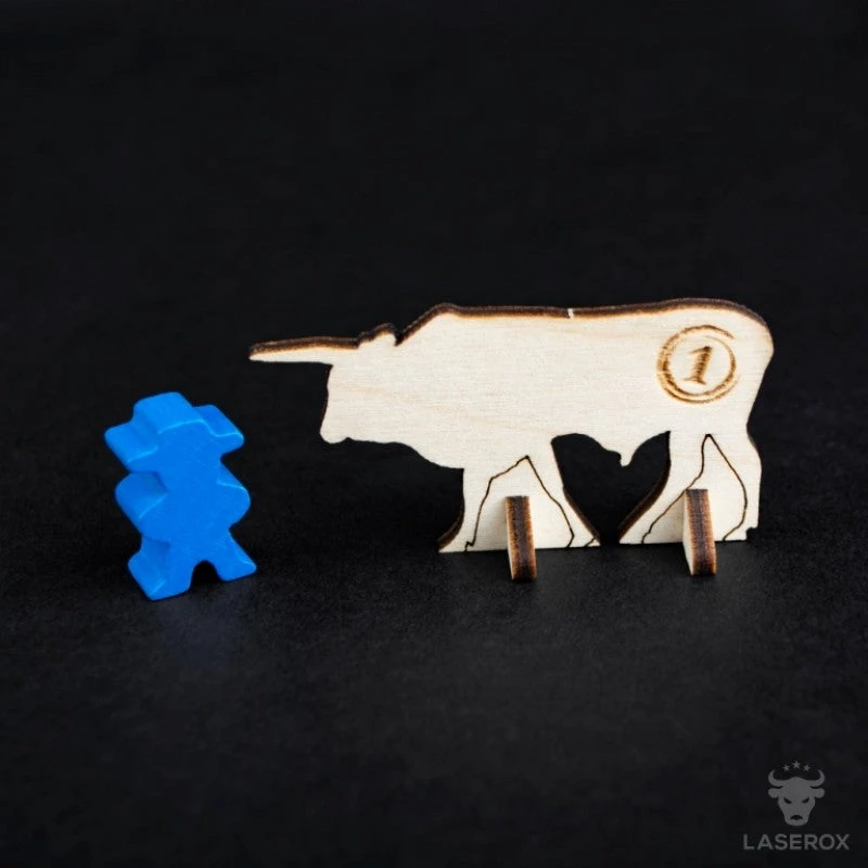 America in the 19th century: You are a rancher and repeatedly herd your cattle from Texas to Kansas City, where you send them off by train. You not only have to cleverly manage your heard, but find also a good solution how to store all components and the expansion in one box neatly.
