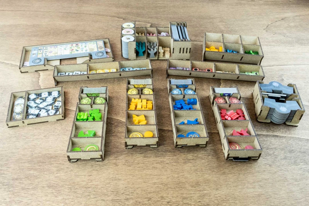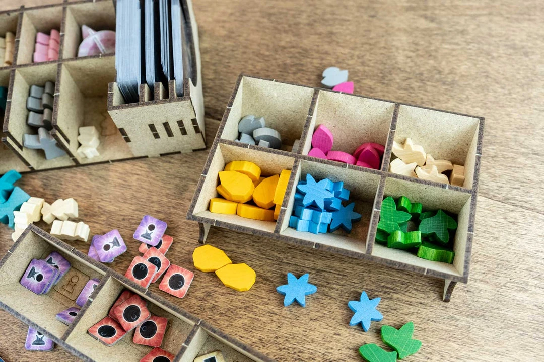 The photos show examples of the organizers in use. You are only purchasing the organizer; the game pieces and box are not included. All trademarks and copyrights are the property of their respective owners. This product is not a toy. Contains small parts that can be swallowed or inhaled. 14+