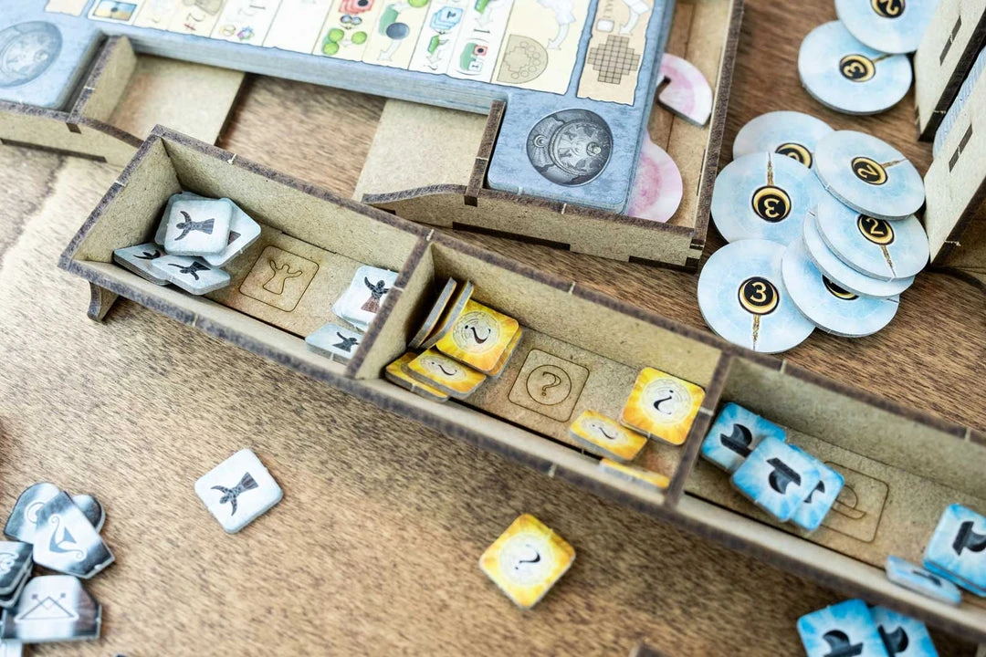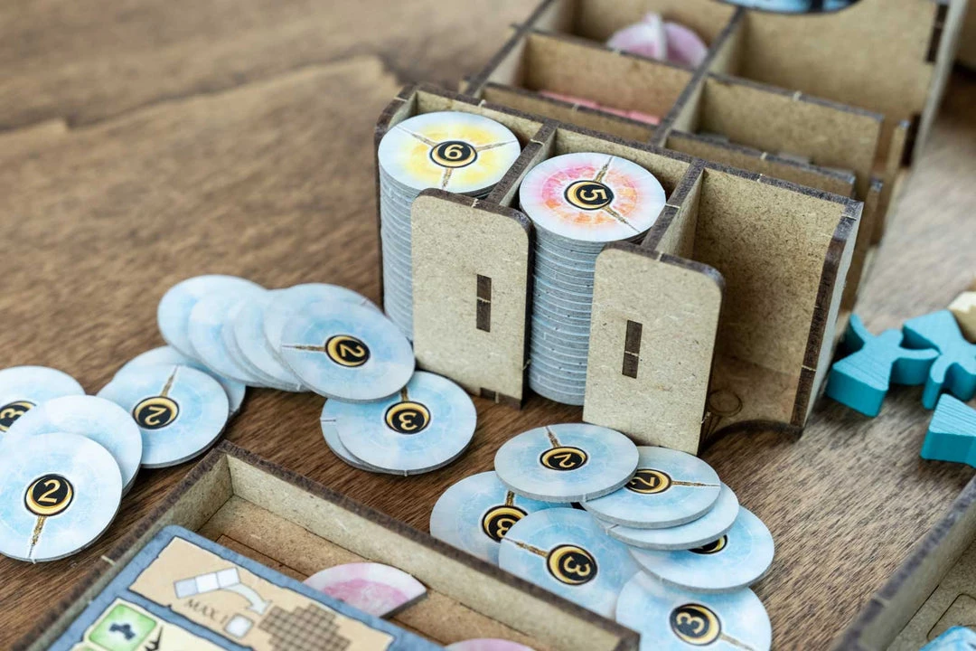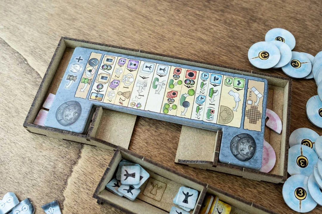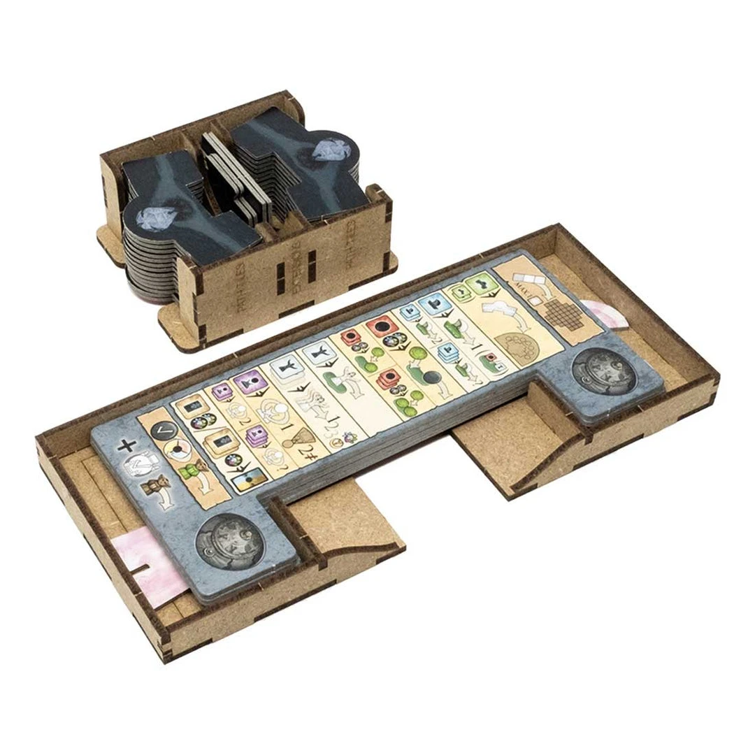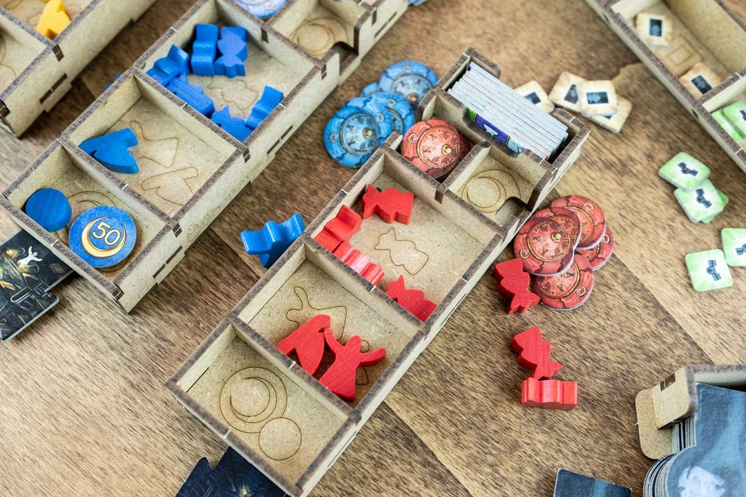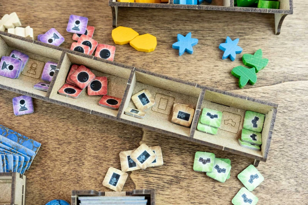 - 2x action token trays with slots for each type and easy pick;
