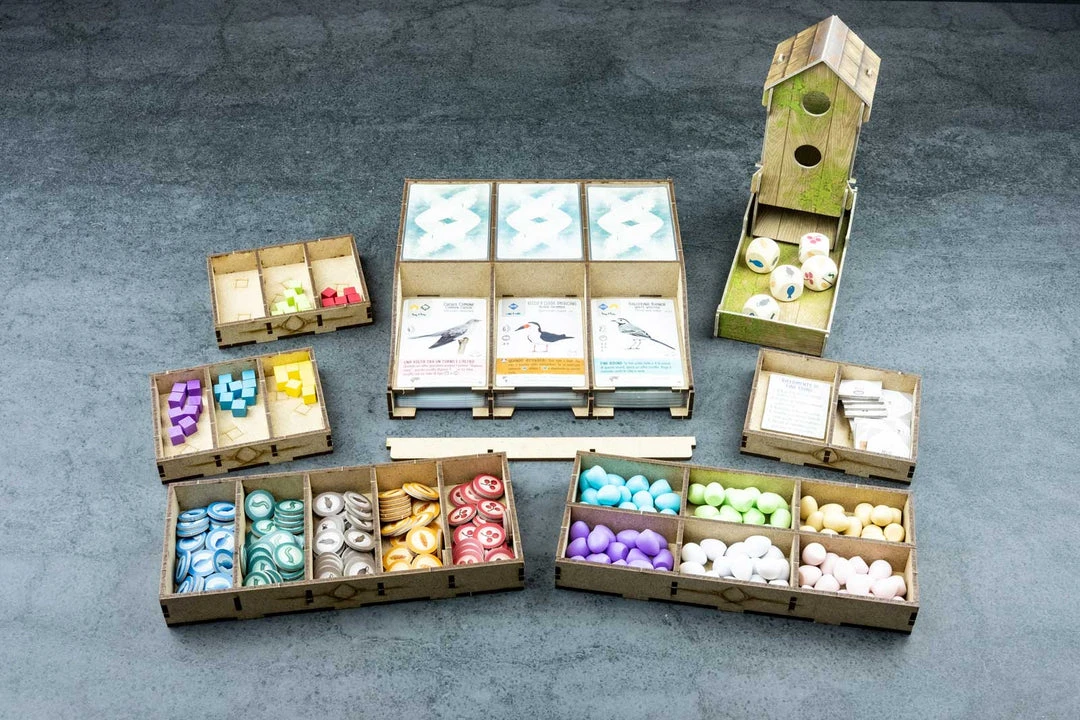 Organizer compatible with Wingspan (Base game or with European exp). This organizer can fit alternatively just the base game or base game + expansion; the card holder has further space for cards from other expansions. Our dice tower, which completes the organizer, is also available HERE; you can also find our organizer+dice tower bundle AT THIS LINK.