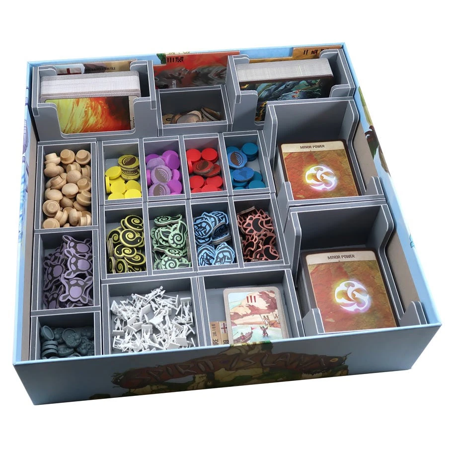 Insert compatible with Spirit Island® and the Branch and Claw® expansion. The insert is also separately compatible with the Jagged Earth® expansion and promos 1 & 2. If you have a complete collection of the game you will need two inserts, one for the base game box and one for Jagged Earth® box.