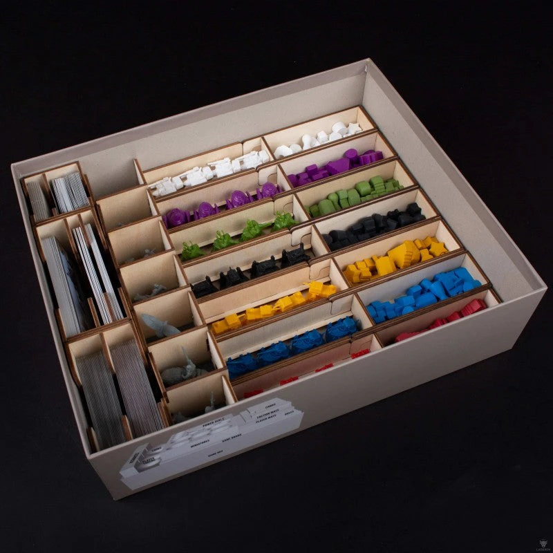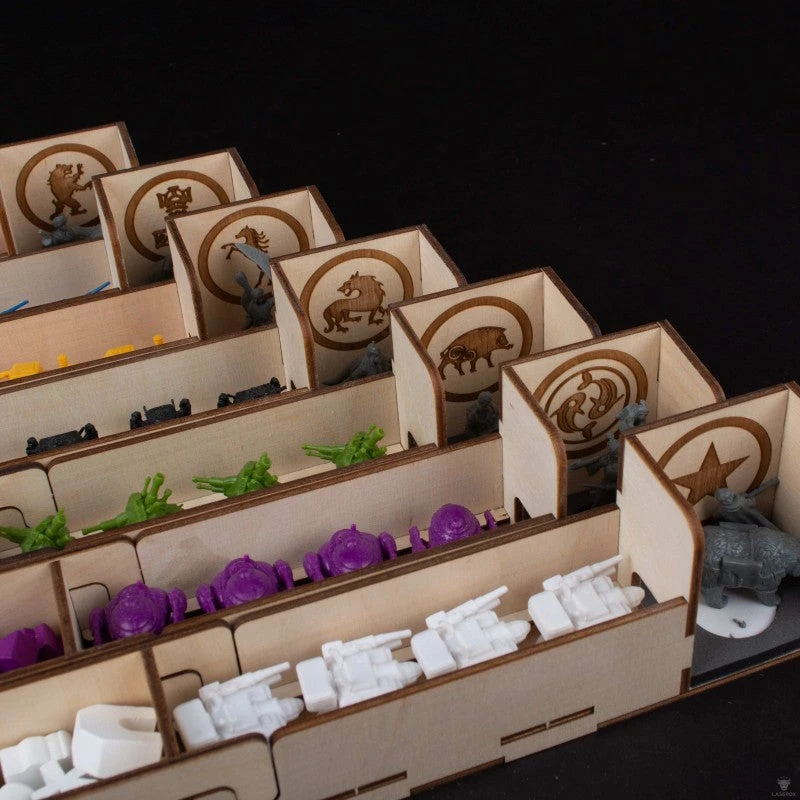 An epic game requires great preparation. Make sure your game box is ready with our Scythe Silo organizer for Scythe by Stonemaier Games. This organizer will fit inside the original Scythe box or the Legendary Box and holds the base game and Invaders from Afar expansion.