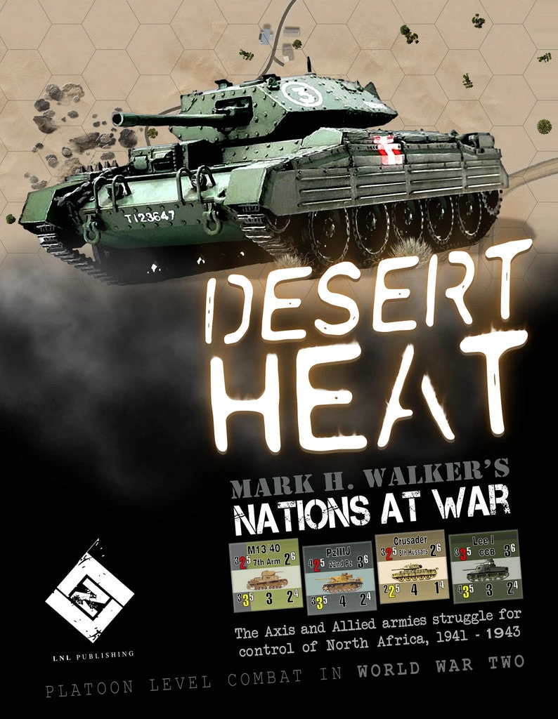 From the LnLP webpage… “It’s the summer of 1943 and Allied forces fight the Axis armies over the burning sands of North Africa. It’s a fluid struggle pitting tanks on tanks, and now you can refight these battles using the popular Nations at War system. Designed by Ralph Ferrari, here you’ll find everything you’re looking for in a platoon-level game -armor, artillery, infantry that serves as more than cannon fodder, command and control, air support, and desperate close assaults that leave the victor in possession of the ground and the defeated in headlong retreat, all in an easy to learn, challenging to master, game system.