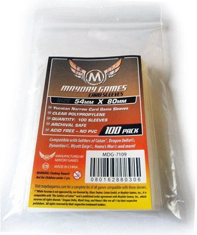 Tired of not having sleeves for your Yucatan games? Well, you won’t be any longer. Mayday Games is proud to present the Yucatan Narrow Card Game Sleeves!