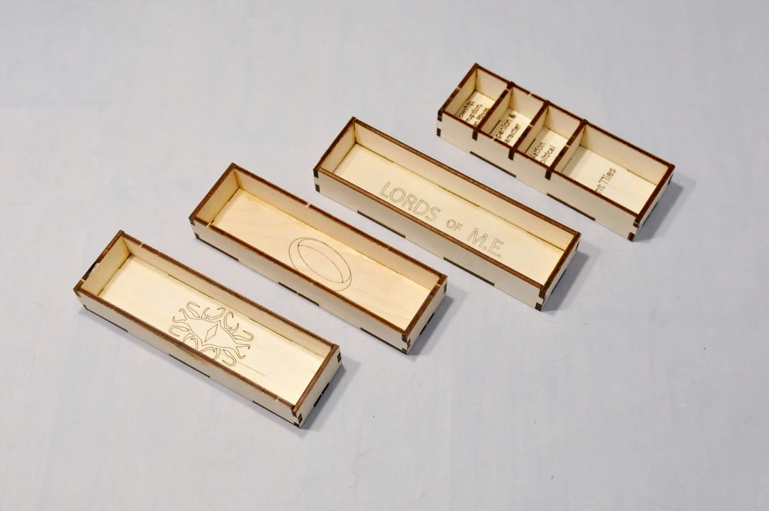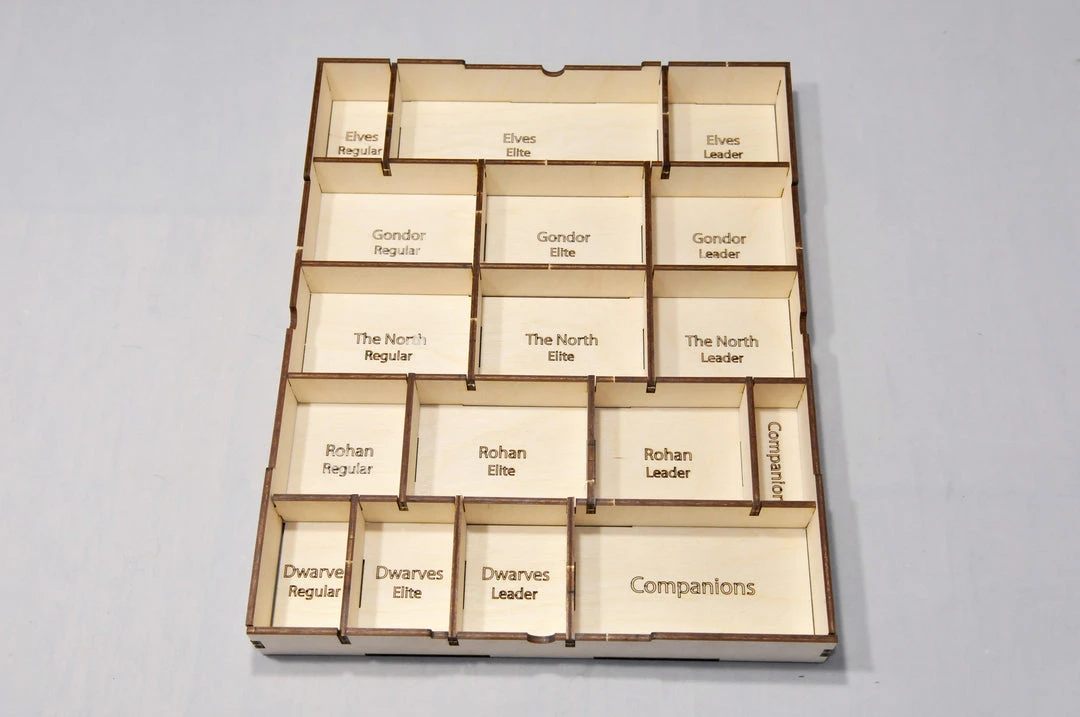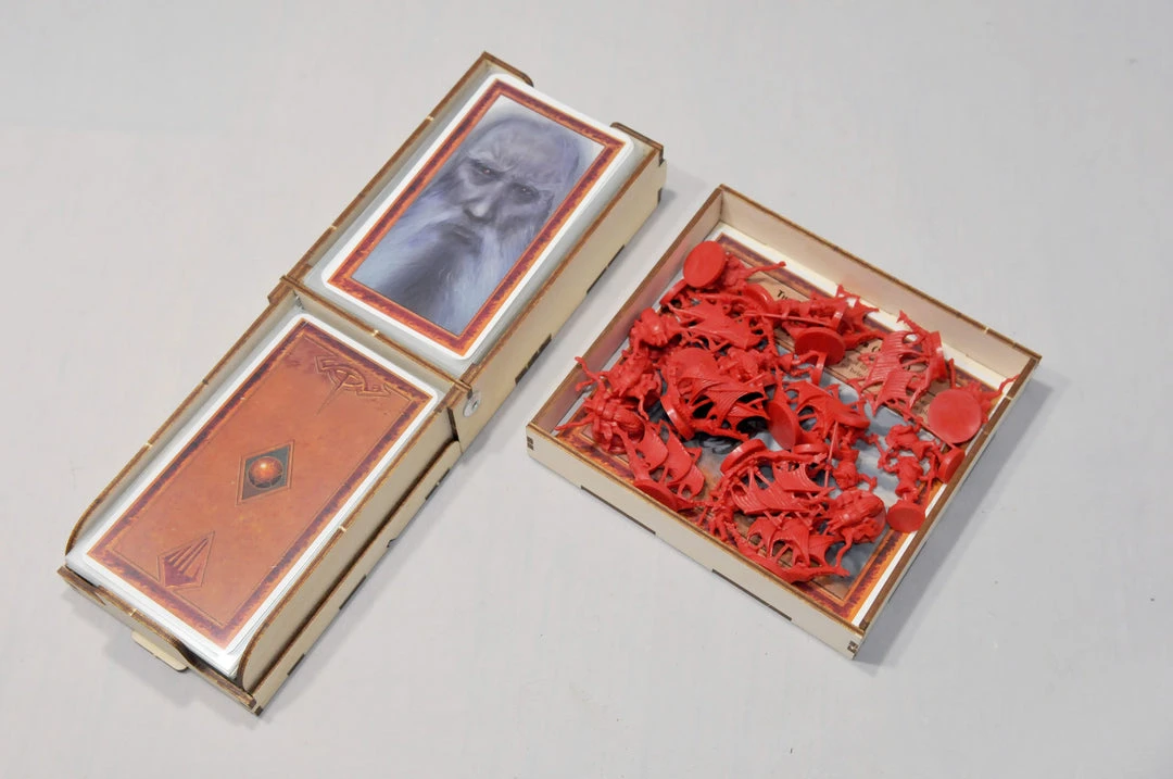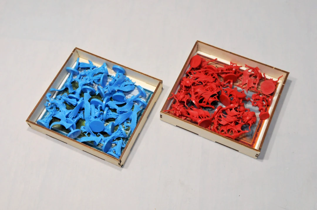 - Storage for game components is etched on the insert.