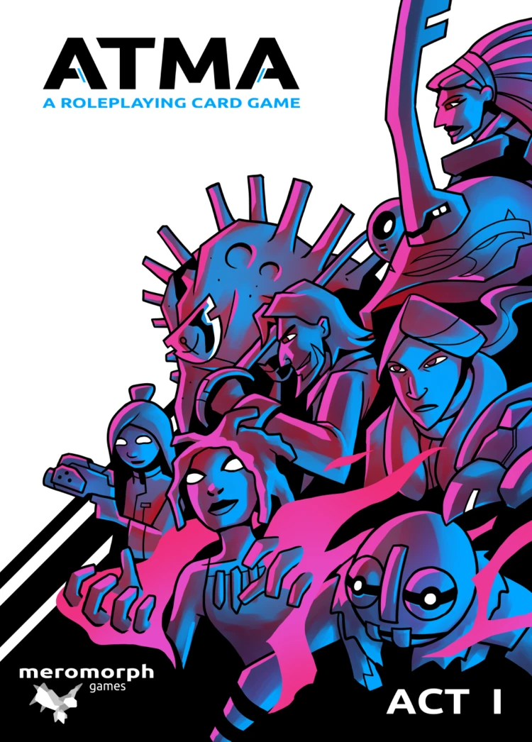 Atma is a complete roleplaying game system in a tiny package. It’s portable, quick to set up and teach, and plays in just 2 hours — perfect for game nights or pop-up sessions! A Game Master and 1-4 players use illustrated tarot cards to fuel RPG gameplay focused on creativity and quick thinking. Atma excels as a tutorial for first-time GMs who’ve always wanted to run an RPG, while allowing limitless creativity for roleplaying pros.