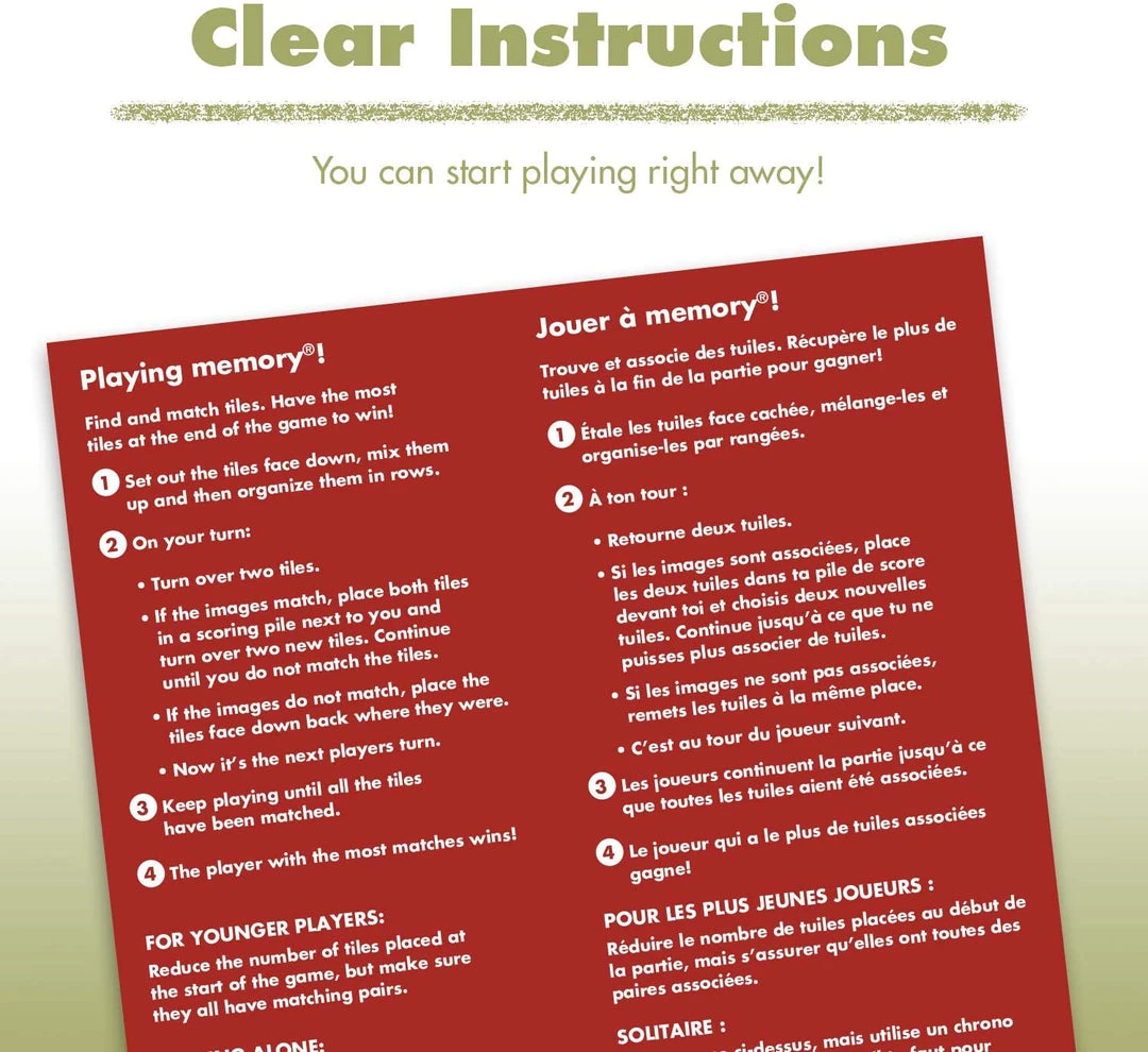 - What you get – great outdoors memory game comes with 48 tiles and instructions.