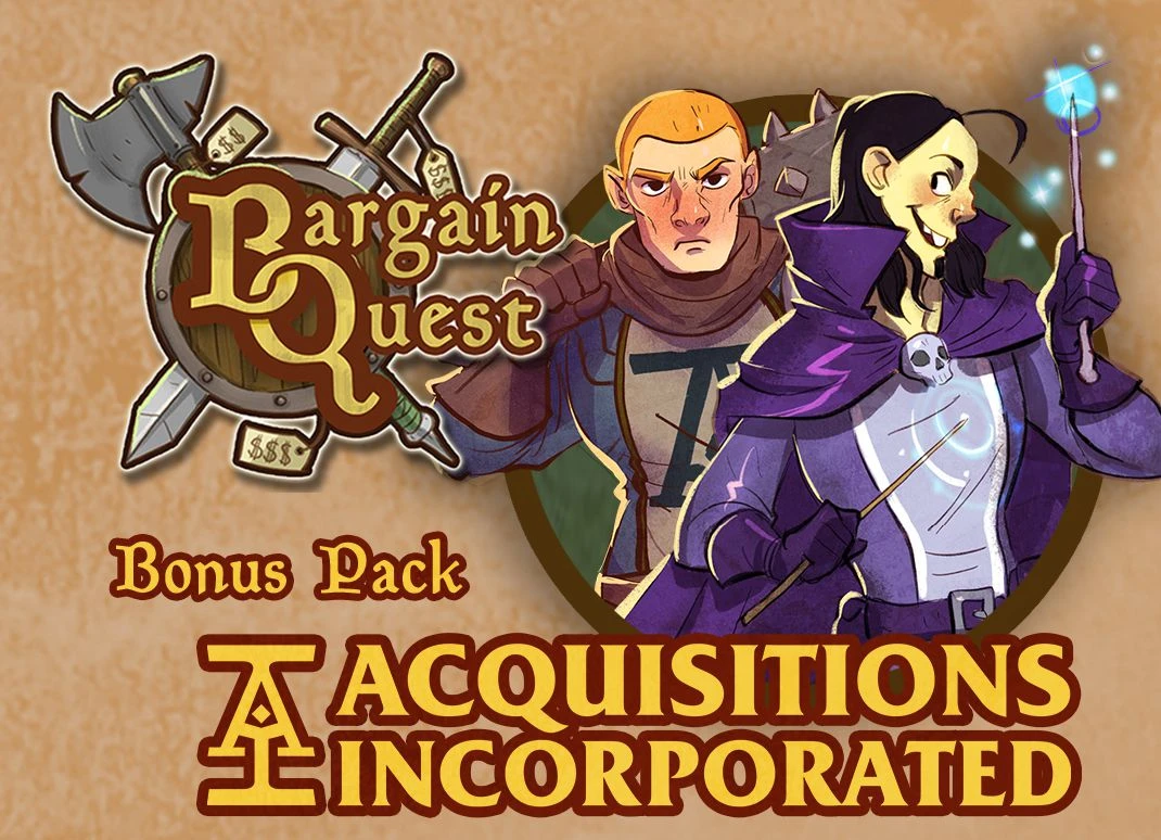 Bargain Quest: Acquisitions Incorporated contains new cards for the Bargain Quest base game featuring characters and items from Penny Arcade’s amazing world of Acquisitions Incorporated!