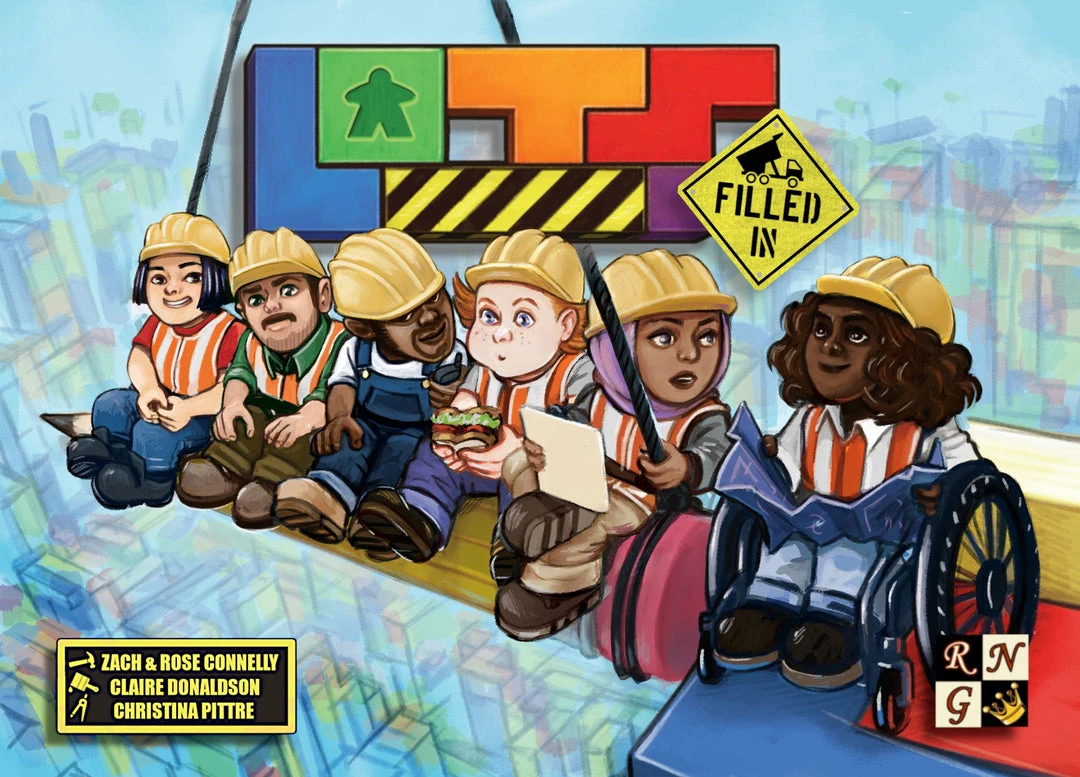 LOTS: Filled In is a roll and write game using “draft crafting”. Players will use a snake draft to gain dice. Once all players have drafted their second die, they will choose 1 die to use for its shape and the other for its color. This will “craft” a block of their choosing. All players will add their block to their tower by coloring in the spaces on their sheet.