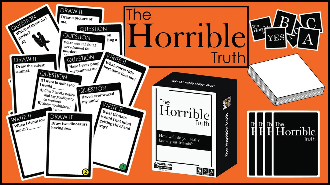 The Horrible Truth is a party game for 4-10 people where you test how well you know your friends while strategically revealing things about yourself.