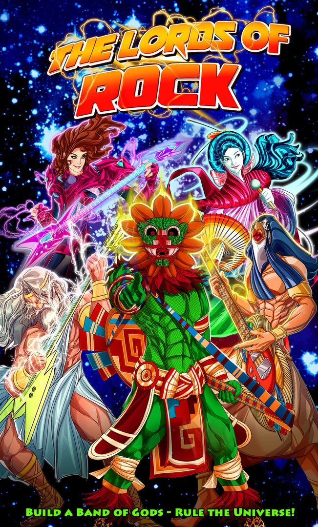 You assemble a band of gods from the pantheons you can choose from. You plan Concerts to gain fans, rocking and rolling against each other to become the ultimate force in the universe.