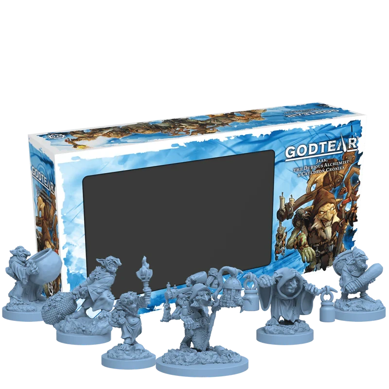 Inside this box is everything you need to bring the Guardian champion Jaak, the Dubious Alchemist and his Cauldron Cronies to the tabletop. Use this expansion with any Godtear starter set for a ready-to-go warband.