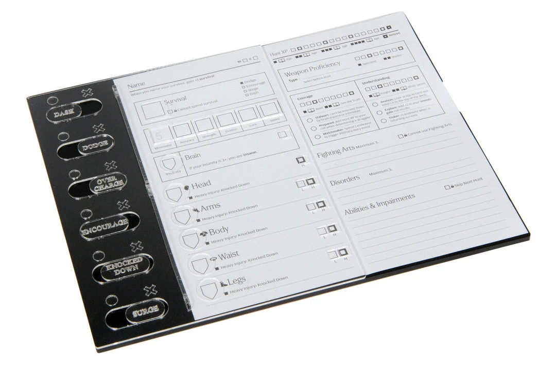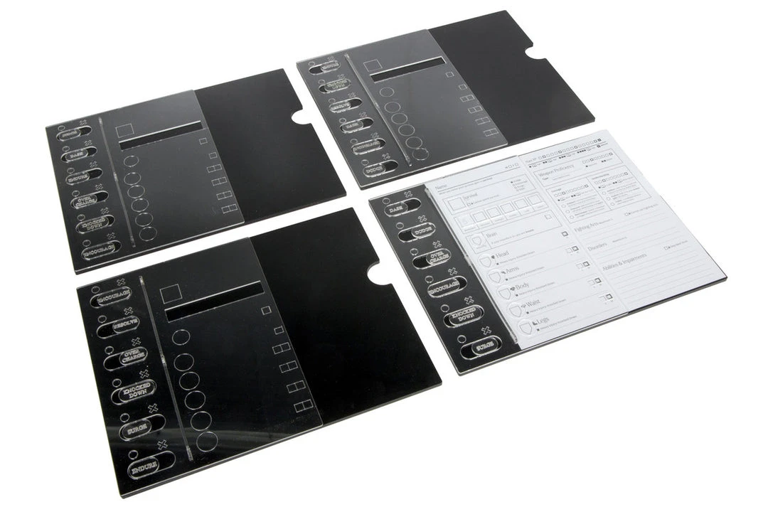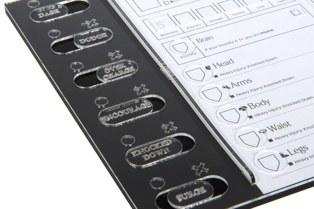 - High-quality acrylic consoles to track actions and overlay character sheet.