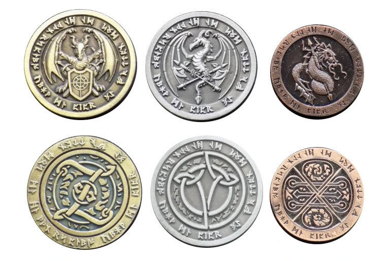 These heavy-weight, finely-minted coins are crafted from zinc and nickel with high-relief 3D detailing and a hand-buffed finish.