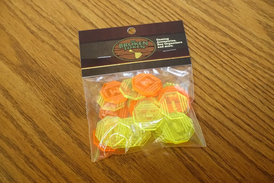 The set includes (20) 1-ISK tokens and (10) 3-ISK tokens. Â Work perfectly with games like Coup.