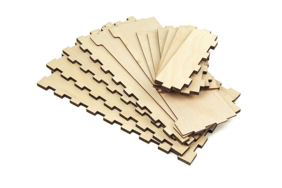 Assemble your own high quality game box to hold your Looney Labs games. Â Made from 1/4″ and 1/8″ Baltic Birch, this precision cut kit is easy to assemble and makes a beautiful addition to your gaming collection. Accommodates 9 Looney Labs game boxes such as Fluxx, Just Desserts, etc.