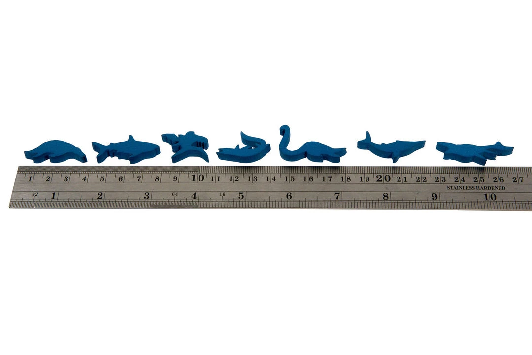 Eight species, eight of each, water Dinomeeples in a totally cool blue.