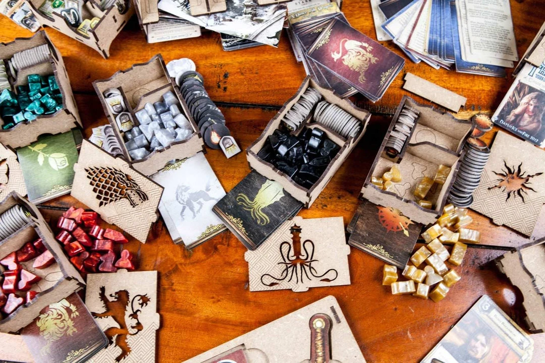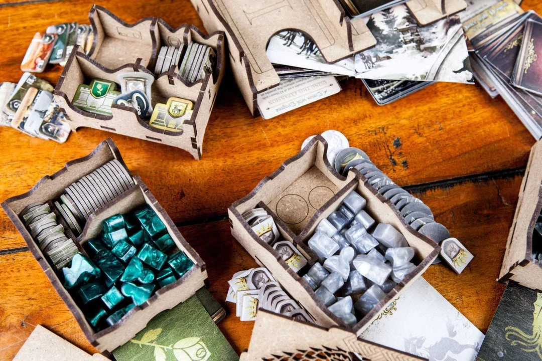 Organizer compatible with A Game of Thrones: The board game (second edition). It also hosts the expansions A feast for crows and A dance with dragons.