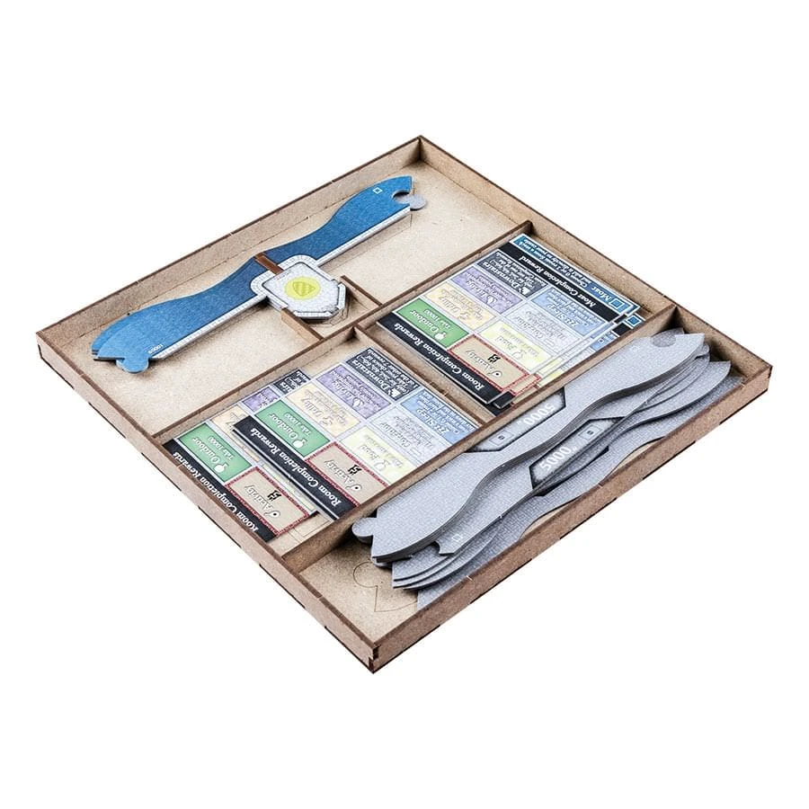 • 1x cardbox with spaces for room cards, bonuses and favor tokens;