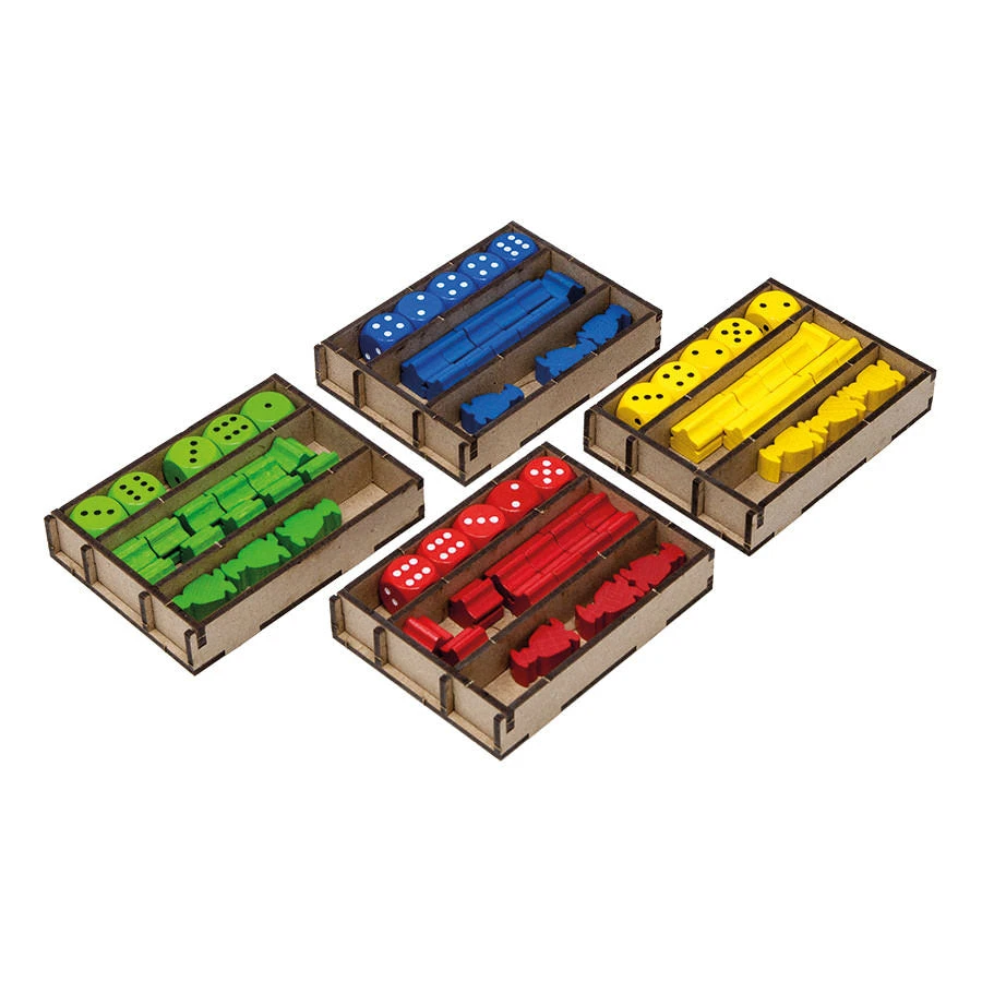 • 4x player set boxes, with slots for each piece type and shutter closure for immediate extraction;
