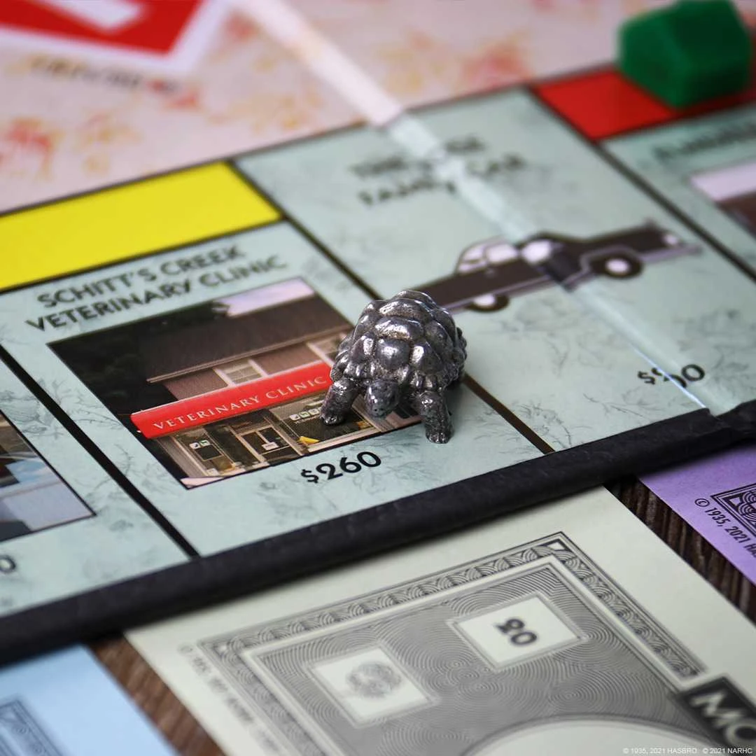 Regroup the family and your dignity to make your way up in MONOPOLY: Schitt’s Creek, based on the hilarious Emmy Award-winning comedy series. Join the Rose family on opportunistic adventures as you buy, sell, and trade popular locations from the show, including The Rosebud Motel, Bob’s Garage, Herb Ertlinger Winery and more. Celebrate tongue-in-cheek victories with Hello You and Love That Journey for Me cards, while rent and taxes like Roland’s Truck and “That’s Not a Write Off!” make or break your small-town struggle to come out as the richest little townie and win!