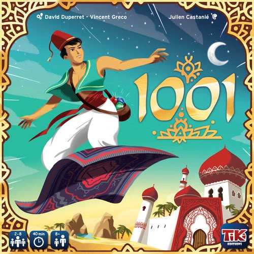 In 1001, you take on the role of the spirits of the four winds who will guide Aladdin’s flying carpet, sometimes to aid him and sometimes to hinder him as the spirits of the wind can be capricious. Players work either solo or in teams, but with individual scores in either case and with points being scored in two ways: