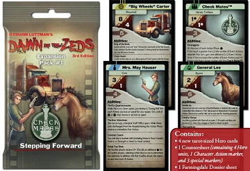 The first Dawn of the Zeds: Third Edition Expansion Pack features 4 new characters (3 heroes and 1 heroic civilians), who are stepping forward, ready to confront the Zeds.