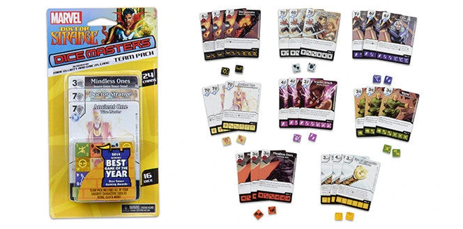 The Marvel Dice Masters: Doctor Strange Team Pack will let players build their own team of heroes or villains! The Marvel Dice Masters: Doctor Strange Team Pack is perfect for the Dice Masters veteran or someone looking to jump into the game fresh! A Team Pack can be paired with any Starter Set to give a player everything they need to build a highly focused team for thematic play!